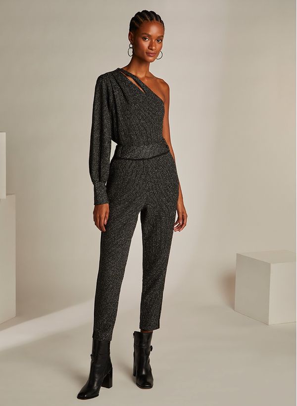 Para um look de destaque, a Calça Luiza garante o brilho e estilo. Experimente o twin set, combinando com a blusa da mesma coleção, acessórios e botas pretas para arrematar. O resultado é uma produção poderosa e elegante.