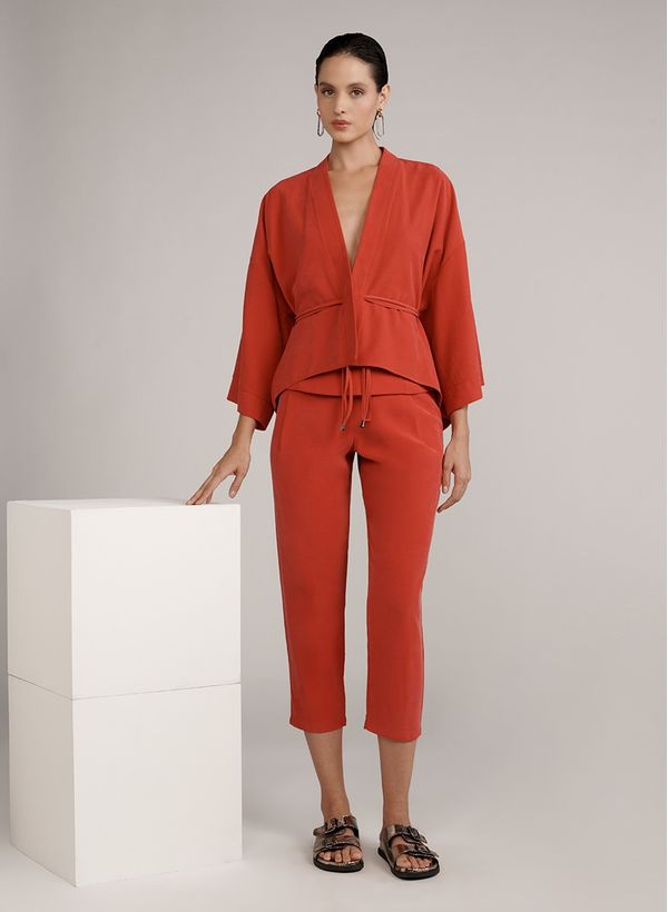 A calça como um ponto de cor no look, é um traço de autenticidade e estilo na produção. A Calça Marie é ainda mais interessante por conta do detalhe sobreposto, aposte na composição infalível e queridinha do momento, combinando a calça com a blusa da mesma coleção, acessórios e papetes. O twin set é contemporâneo e elegante, para eventos e saídas com as amigas.