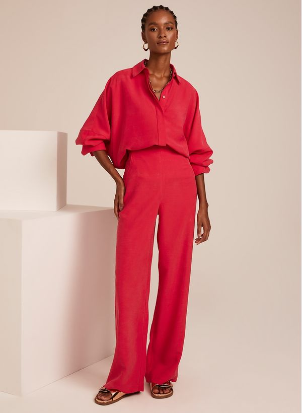 Para um ar imponente e sofisticado, a calça de tecido plano garante um caimento perfeito na produção. Combine com acessórios dourados, calça da mesma coleção e finalize com papetes, para um visual easychic.
