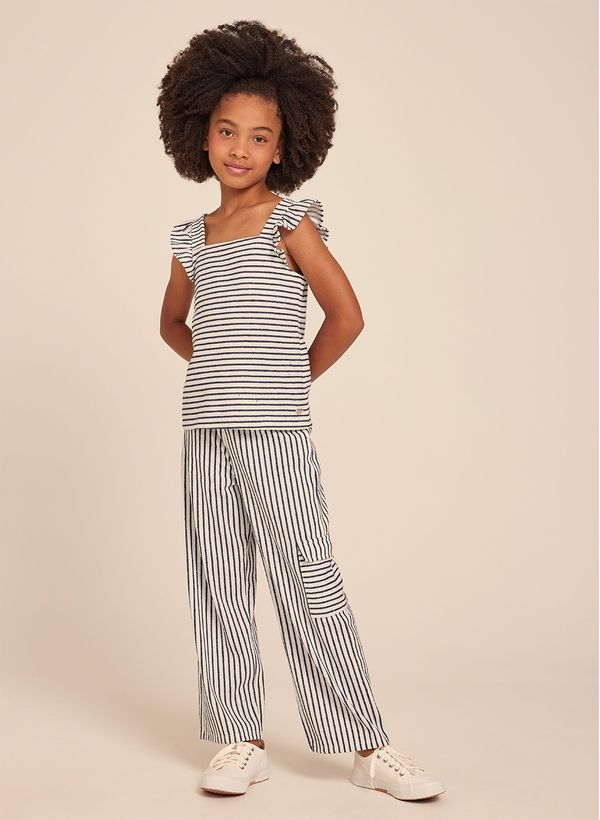 Confeccionada em malha reciclada, a Calça possui padronagem listrada, caimento reto, cós aplicado, bolso fole na lateral e acabamento pespontado.