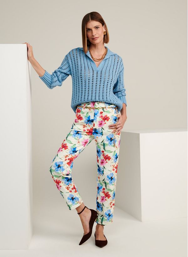 Cool e chic, a Calça Bouquet é uma companheira confiável para criar looks divertidos e estilosos. Combine com acessórios dourados, tricot e finalizando a composição com sapatilhas, para uma produção protagonista e autêntica.