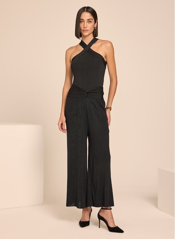 Invista em peças autênticas que proporcionam versatilidade de looks como a Calça Riley que além de conforto, ela deixa sua produção com a textura chic do tricot. Para um visual all black poderoso, use com a regata da mesma coleção, acessórios e scarpin.