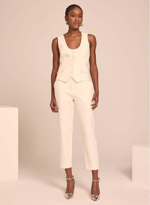 No mood verão, a Calça Sarah irá deixar seu visual charmoso e elegante. Invista em peças de claras para acrescentar frescor nas suas produções, combine a calça com acessórios, o colete da mesma coleção e sandália de salto, para uma composição impecável e chic.