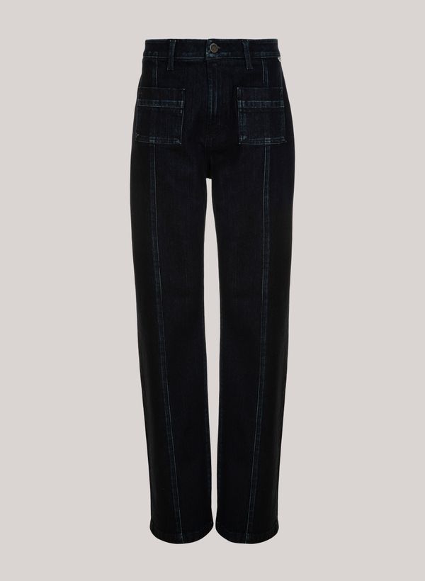 Confeccionada em jeans, a calça possui modelagem new wide, cós com passantes, fechamento frontal por zíper e botão, bolsos aplicados e acabamento pespontado.