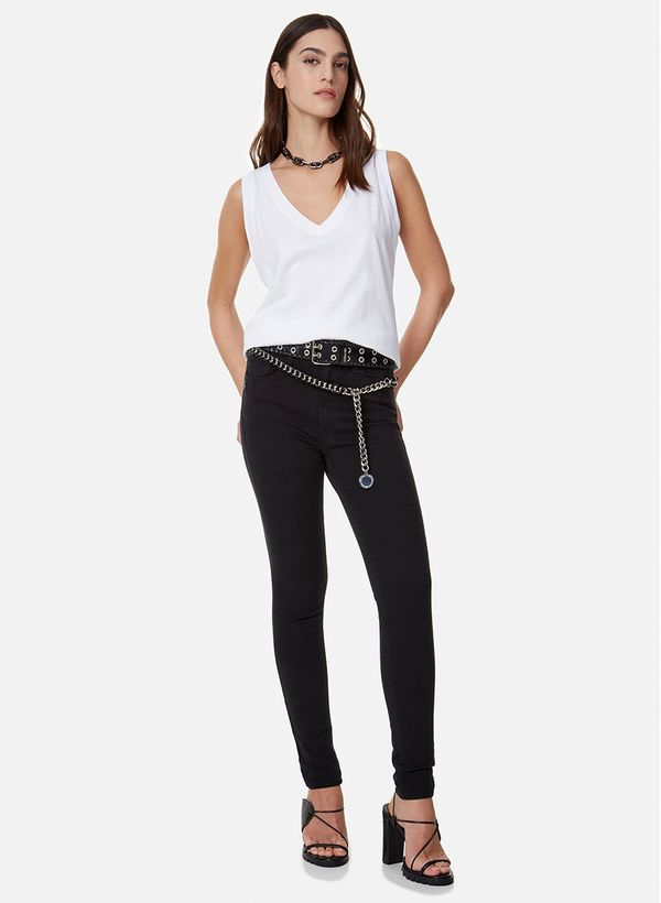 Confeccionada em sarja, a Calça possui modelagem perfect fit skinny, se justa ao corpo e não deforma conforme o uso, bolsos, acabamento pespontado e fechamento por botão e zíper frontal.