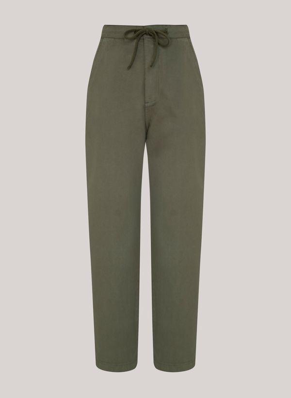 Confeccionada em sarja, a Calça possui modelagem reta, cós com cordão para amarração, bolsos frontais e posteriores, bordado no bolso posterior e acabamento pespontado.