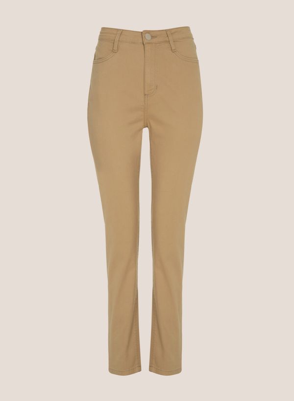 Confeccionada em Sarja, a Calça possui modelagem Cigarrete, ajustada da cintura até a barra, comprimento na altura do tornozelo, cós com passante para cintos, bolsos frontais e posteriores, fechamento por zíper e botão e acabamento pespontado.