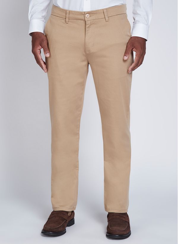 A calça modelo chino é uma peça curinga no closet masculino, ideal para transitar do look casual ao formal. Combine com camisa e sapatos para um visual arrojado.