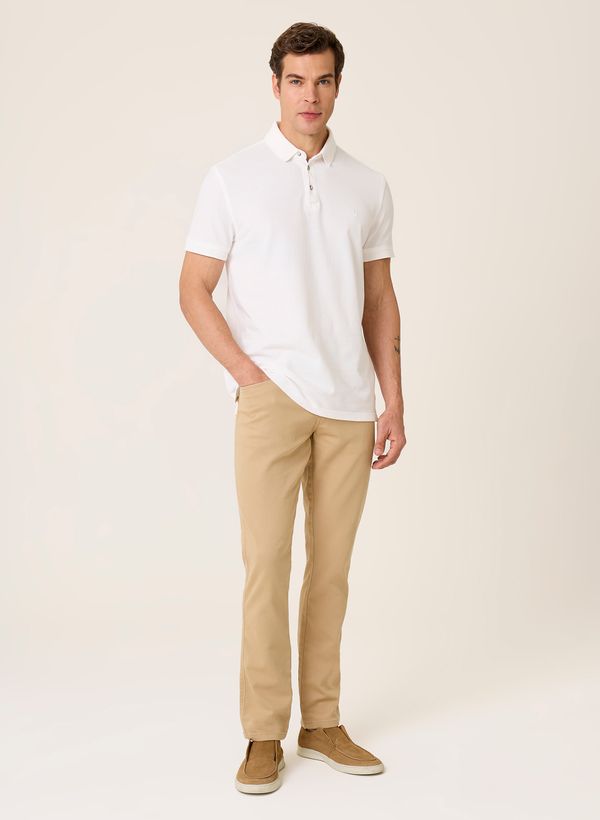 Confeccionada em Sarja com toque de moletom, a Calça possui modelagem Slim Fit, com corte ajustado ao longo das pernas e caimento rente ao corpo sem comprometer o conforto, bolsos frontais e posteriores, cós com passante para cintos, cintura média, etiqueta externa atrás, fechamento por zíper e botão, acabamento pespontado.