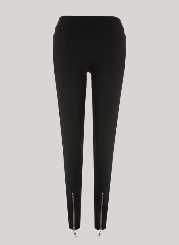 Confeccionada em tecido plano, a Calça possui modelagem skinny, cós alto, bolsos frontais, bolsos posteriores decorativos, plaquinha metalizada personalizada, fendas com zíper aplicado na barra e acabamento pespontado.