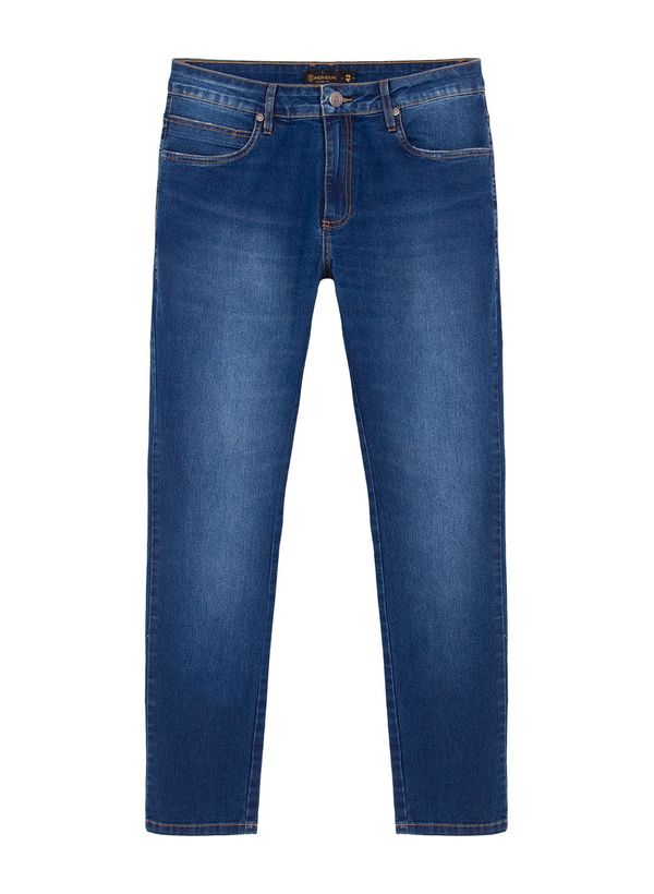 Confeccionada em jeans, a Calça possui modelagem skinny, cós com passantes, fechamento frontal por zíper e botão, cincos bolsos e acabamento pespontado.