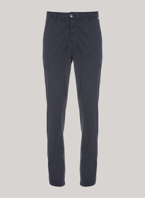 Confeccionada em sarja, a Calça possui modelagem slim fit, cós com passantes, bolsos frontais e posteriores, fechamento frontal por zíper e botão e acabamento pespontado.