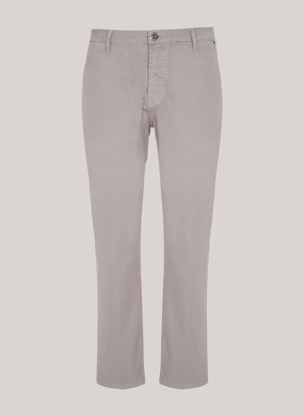 slim fit, cós com passantes, bolsos frontais e posteriores, fechamento frontal por zíper e botão e acabamento pespontado.