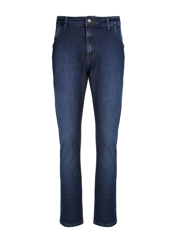 Confeccionada em jeans, a Calça possui modelagem slim, cós com passantes, fechamento frontal por zíper e botão, cincos bolsos e acabamento pespontado.