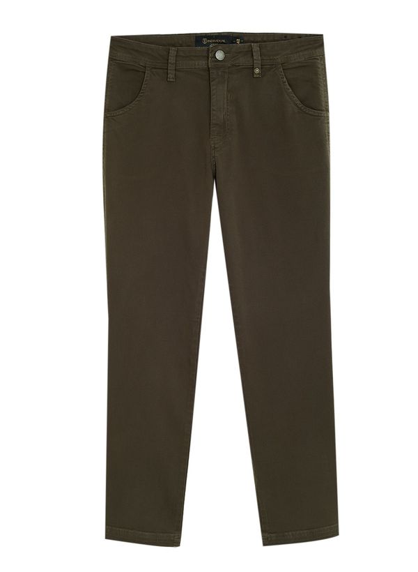 Confeccionada em sarja, a Calça possui modelagem slim, cós com passantes, fechamento frontal por zíper e botão, cincos bolsos e acabamento pespontado.