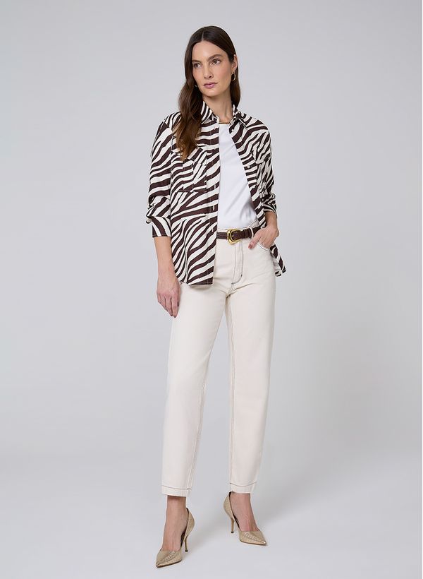 Repleta de personalidade, a Camisa Bolsos Zebra é ideal para quem quer destacar o visual. Para um look casual e elegante, combine-a com uma blusa flame e calça de sarja. Finalize com um cinto de couro e scarpins para um toque sofisticado.