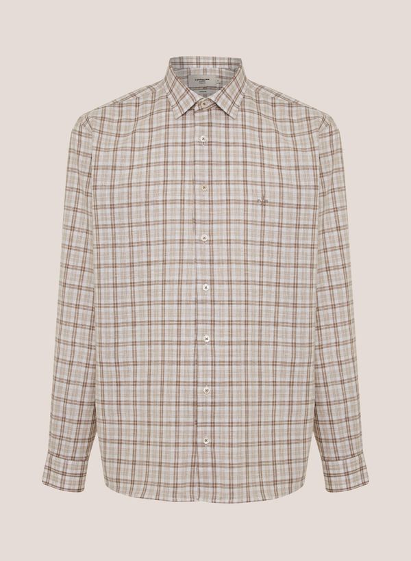 Confeccionada em tecido plano, a Camisa possui modelagem Comfort Fit, colarinho Slim, mangas longas, punho chanfrado com abotoamento, detalhe logo bordado no peito, padronagem Xadrez, vista frontal po fechamento em botões.