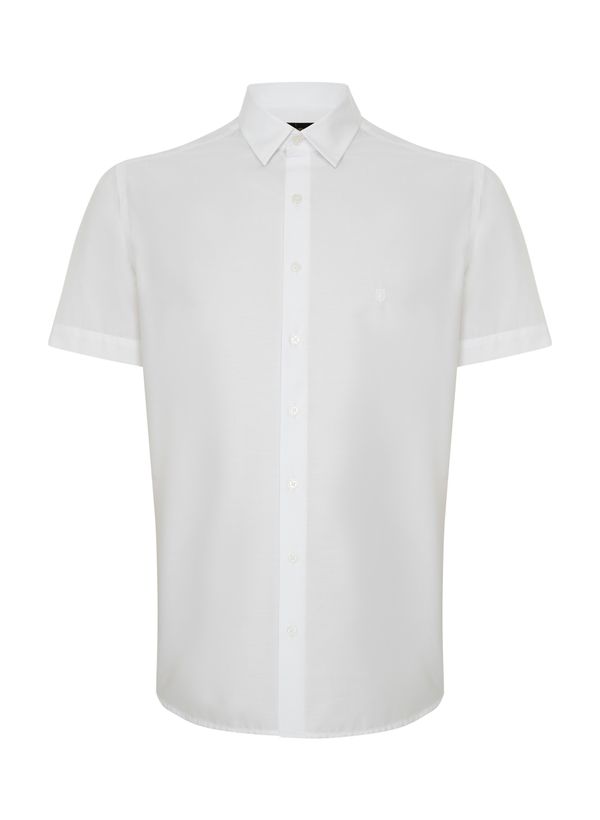 Confeccionada em tecido plano, a Camisa possui modelagem comfort fit, colarinho Tradicional com Aleta, vista com botões, bolso frontal com assinatura da marca em bordado, mangas curtas e acabamento pespontado.