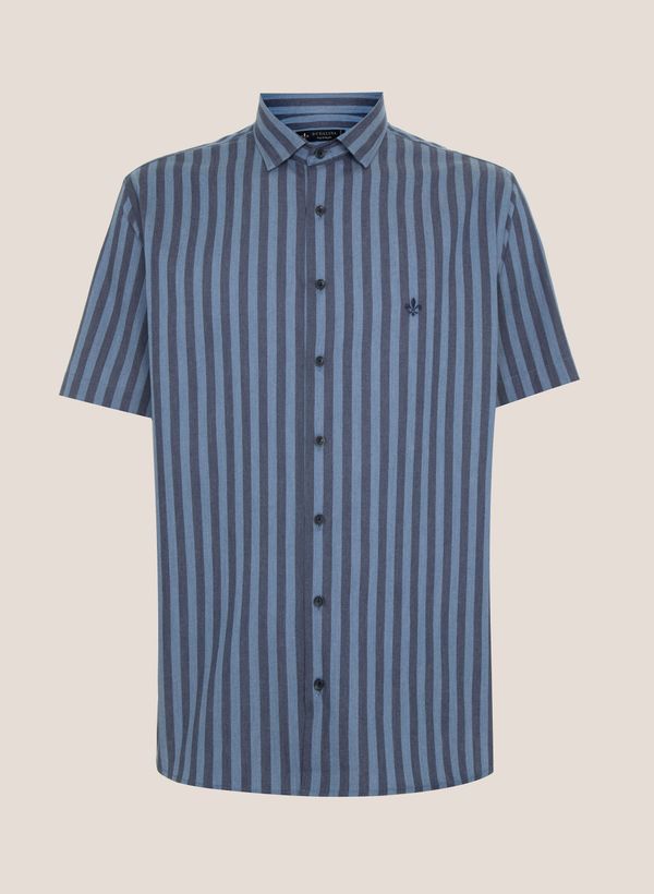 Confeccionada em tecido plano com padronagem listrada, a Camisa possui modelagem comfort fit, colarinho, vista com botões, assinatura da marca em bordado, mangas curtas e acabamento pespontado.