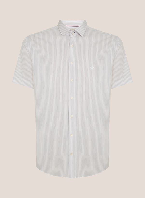 Confeccionada em tecido plano, a Camisa possui modelagem Comfort Fit, colarinho New Slim, mangas curtas, padronagem Listrada, detalhe logo bordado no peito, vista frontal por fechamento em botões e acabamento pespontado.