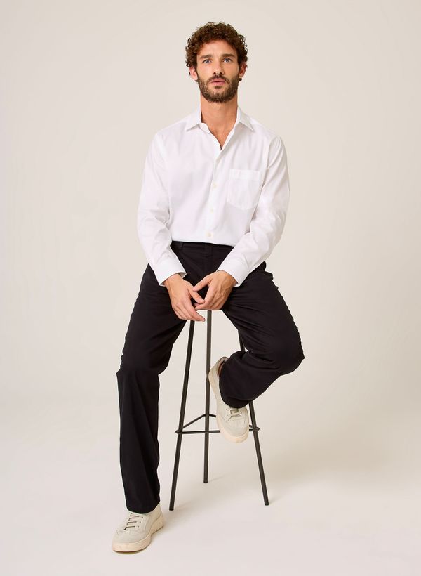 Confeccionada em tecido plano, a Camisa possui modelagem Comfort Fit, padronagem maquinetada, colarinho Firenze Slim, detalhe de logo bordado na parte frontal, bolso no modelo seta na parte frontal, mangas longas, punhos quadrados e fechamento frontal por botões.