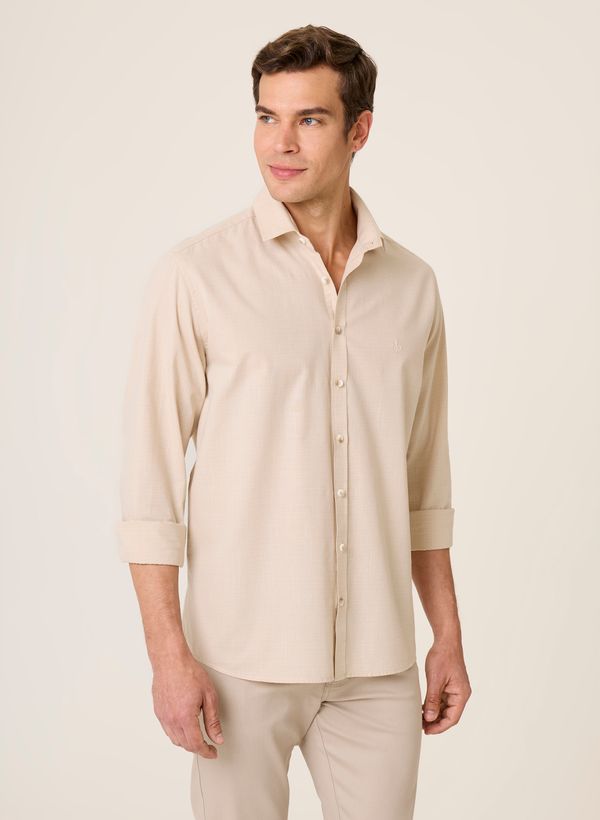 Confeccionado em tecido plano, a Camisa possui modelagem Comfort Fit, mangas longas, colarinho New Slim, detalhe bordado com logo no peito, fechamento por botões e acabamento pespontado.