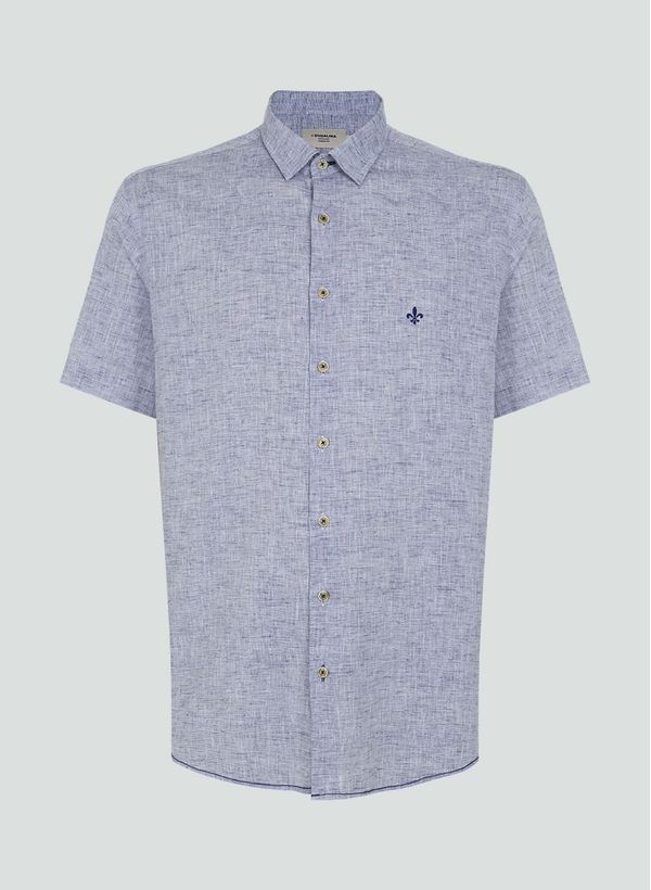 Confeccionada em tecido plano, a Camisa possui modelagem comfort, colarinho slim, detalhe de logo bordado na parte frontal, mangas curtas e fechamento frontal por botões.