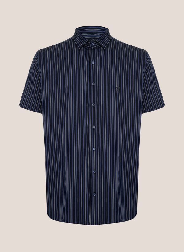 Confeccionada em tecido plano, a camisa possui modelagem comfort, padronagem listrada, colarinho new slim, detalhe de logo bordado na parte frontal, mangas curtas e fechamento frontal por botões.