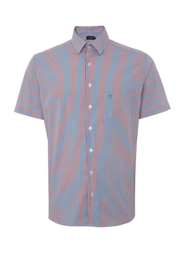Confeccionada em tecido plano, a Camisa possui modelagem comfort, colarinho tradicional com aleta, mangas curtas, fechamento frontal por botões, detalhe frontal de logo bordada, barra arredondada e acabamento pespontado.