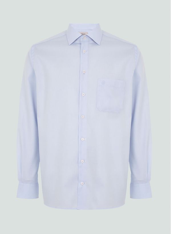 Confeccionada em tecido plano, a camisa possui tecnologia Wrinkle Free, modelagem Comfort Fit, padronagem maquinetada, colarinho Slim, detalhe de logo bordado na parte frontal, mangas longas, punhos Milano Fit e fechamento frontal por botões.