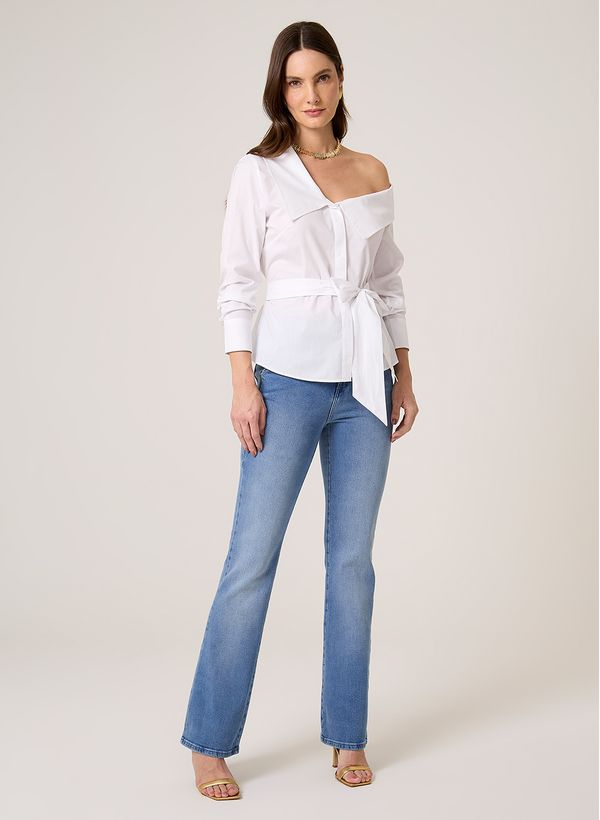Ideal para um visual elegante e moderno, a Camisa com Decote Diferenciado se destaca pelo design único e caimento impecável. Combine-a com calça jeans, acessórios dourados e sandálias para criar um look sofisticado e cheio de estilo.