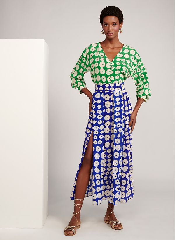 Desenvolvida em parceria com a marca BDLN, a Camisa Greta além de ser autêntica pela sua padronagem tem o toque suave de seda, adicionando leveza e sofisticação ao look. Invista na combinação de cores combinando com a saia da mesma coleção, acessórios e para arrematar use sandálias flats metalizadas.