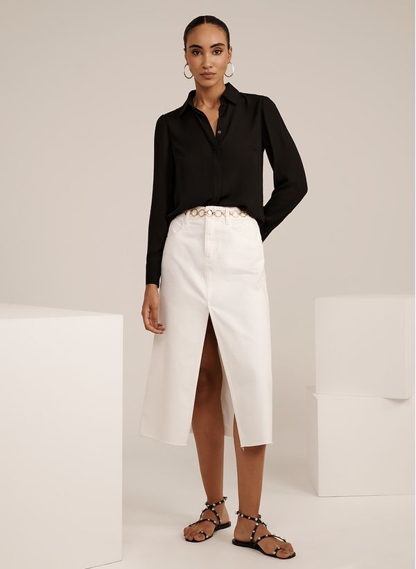 Versátil e marcante, a Camisa Jo te acompanha tanto no dia a dia quanto a um jantar especial, tudo depende da sua composição. Use com acessórios, saia midi jeans e flats, para um visual trendychic e estiloso.