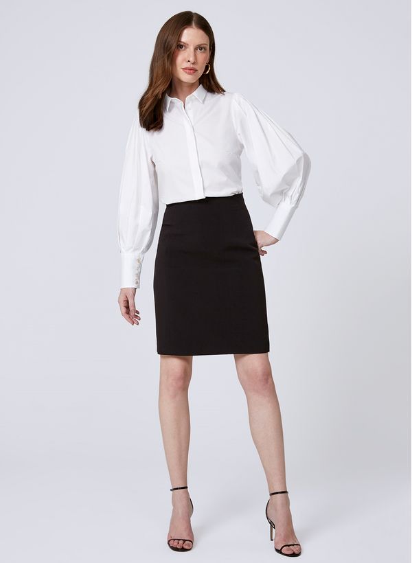 A Camisa Maquinetada Bufante transforma qualquer look. Graças às suas mangas bufantes, o visual se torna arrojado e elegante. Para combinar com a peça, aposte em saias lápis, sandálias de salto alto e acessórios.