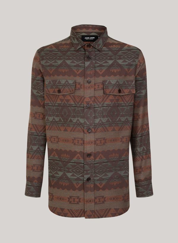 Confeccionada em tecido plano estampado, a Camisa possui modelagem oversized, gola clássica, vista com botões, mangas longas com abotoamento nos punhos, bolsos frontais e acabamento pespontado.