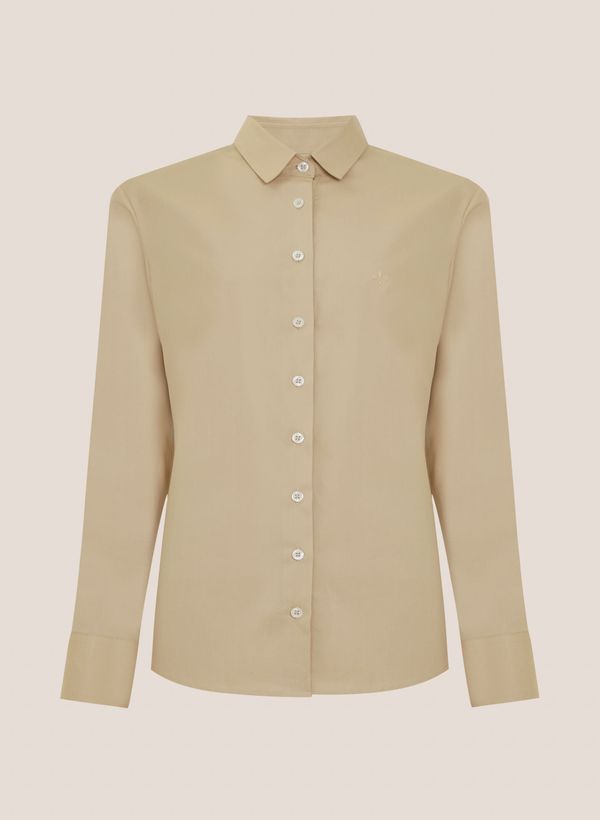Confeccionada em tecido plano, a Camisa possui modelagem Regular Fit, colarinho Slim, mangas longas, punho clássico com abotoamento, detalhe logo bordado no peito e vista frontal por fechamento em botões.