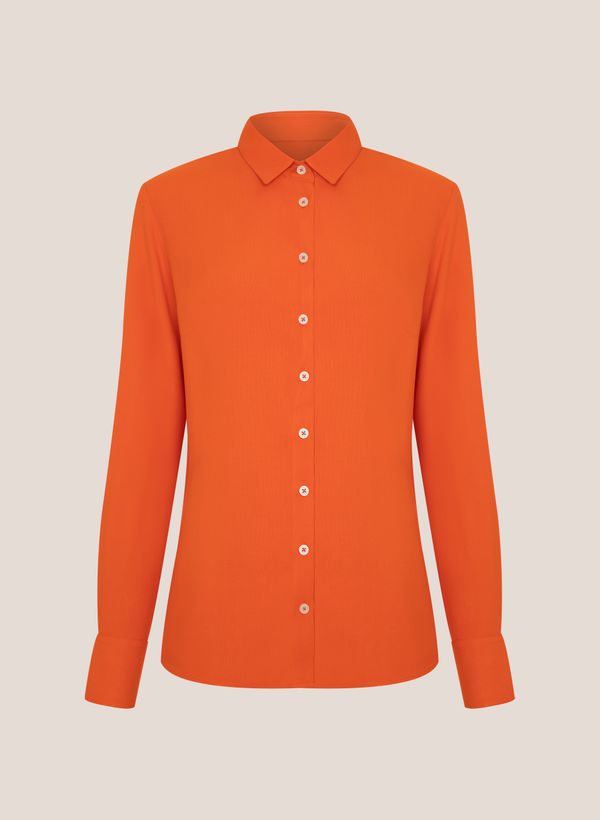 Confeccionada em tecido plano, a Camisa possui modelagem Regular Fit, colarinho Slim, mangas longas, punho clássico com abotoamento, detalhe logo em metal nas costas e vista frontal por fechamento em botões.