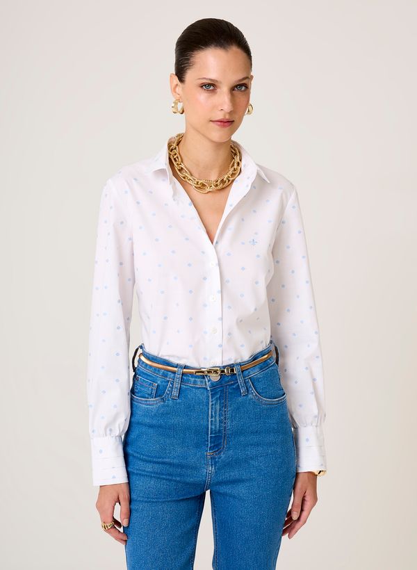 Confeccionada em tecido plano, a Camisa possui modelagem Regular Fit, colarinho Slim, mangas longas, punho diferenciado com abotoamento, padronagem Maquinetada, detalhe logo bordado no peito, vista frontal por fechamento em botões.