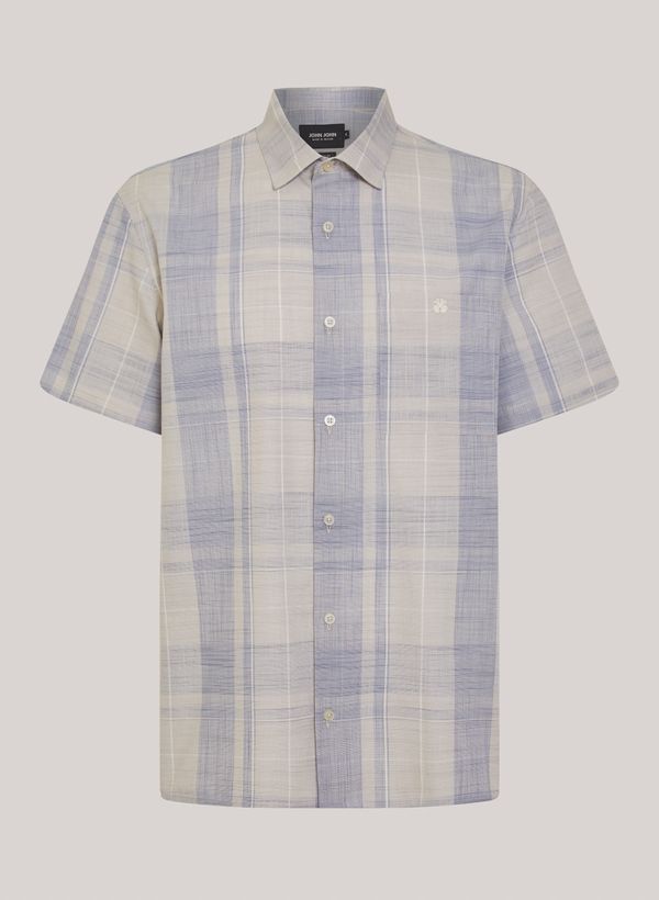 tecido plano com padronagem xadrez, a Camisa possui modelagem