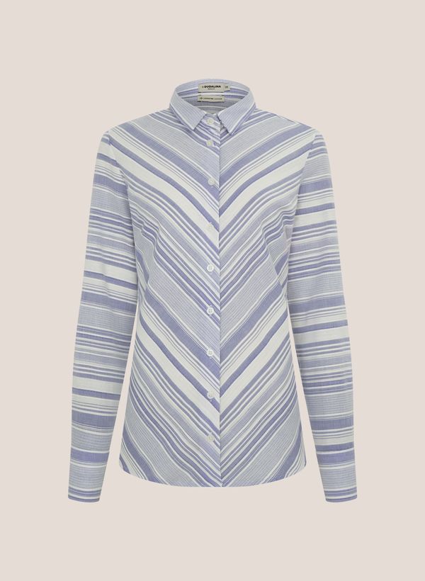 Confeccionada em tecido plano com padronagem listrada, a Camisa possui modelagem regular fit, colarinho, vista com botóes, mangas longas com abotoamento nos punhos e acabamento pespontado.