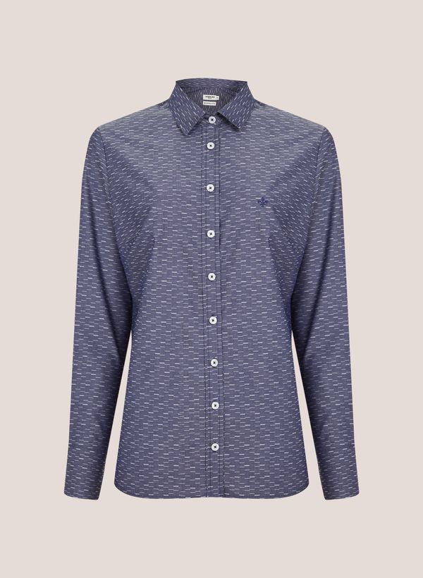 Confeccionada em tecido plano, a camisa possui modelagem regular, padronagem maquinetada, gola de camisa, colarinho slim, detalhe de logo bordado na parte frontal, mangas longas, punhos clássicos e fechamento frontal por botões.