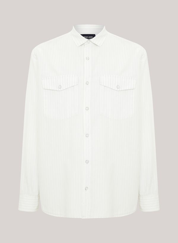Confeccionada em tecido plano com padronagem listrada, a Camisa possui modelagem relaxed fit, colarinho, vista com botões, bolsos frontais, mangas longas com abotoamento nos punhos e acabamento pespontado.