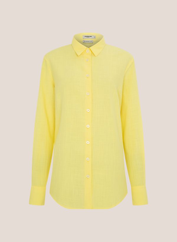 Confeccionada em tecido plano, a Camisa possui modelagem relaxed fit, colarinho, vista com botóes, mangas longas com abotoamento nos punhos e acabamento pespontado.