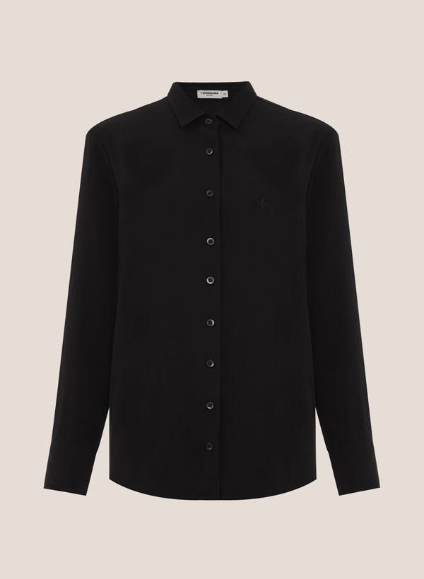 Confeccionada em tecido plano, a Camisa possui modelagem Relaxed Fit, colarinho Anatômico, mangas longas, punho duplo chanfrado com abotoamento, detalhe logo em placa de metal e vista frontal por fechamento em botões.