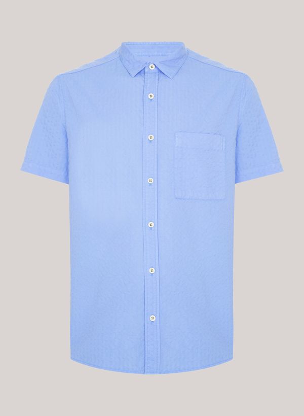 relaxed fit, colarinho, vista com botões, bolso frontal, mangas curtas e acabamento pespontado.