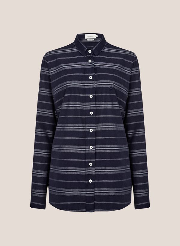 Confeccionada em tecido plano com padronagem listrada, a Camisa possui modelagem relaxed fit, colarinho, vista com botões, assinatura da marca em bordado, mangas longas com abotoamento nos punhos e acabamento pespontado.