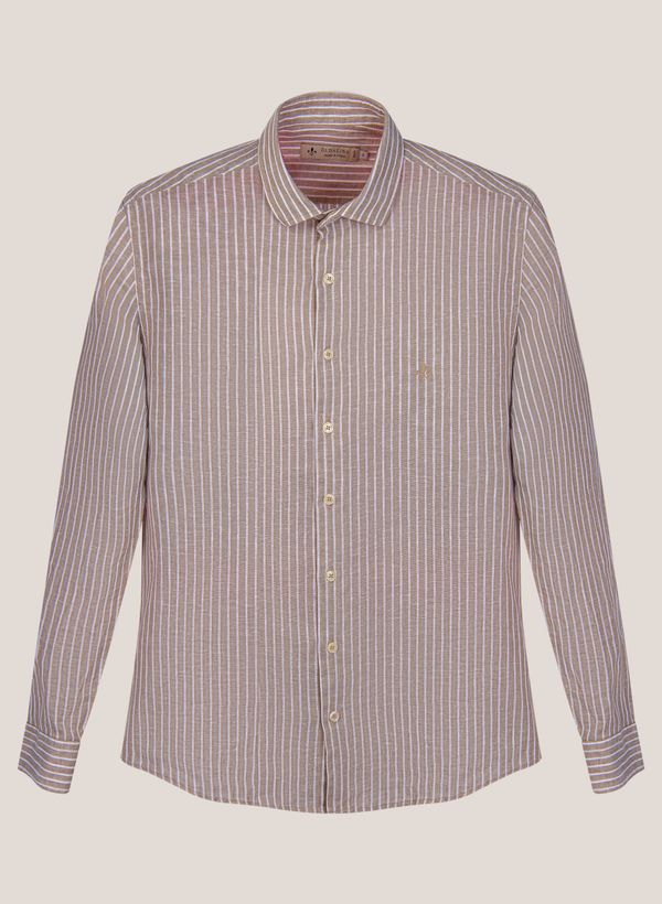 Confeccionada em tecido plano com toque de linho, a Camisa possui modelagem Slim Fit, colarinho Firenze Slim, mangas longas, punho chanfrado com abotoamento, detalhe logo bordado no peito, padronagem Listrada e vista frontal por fechamento em botões.