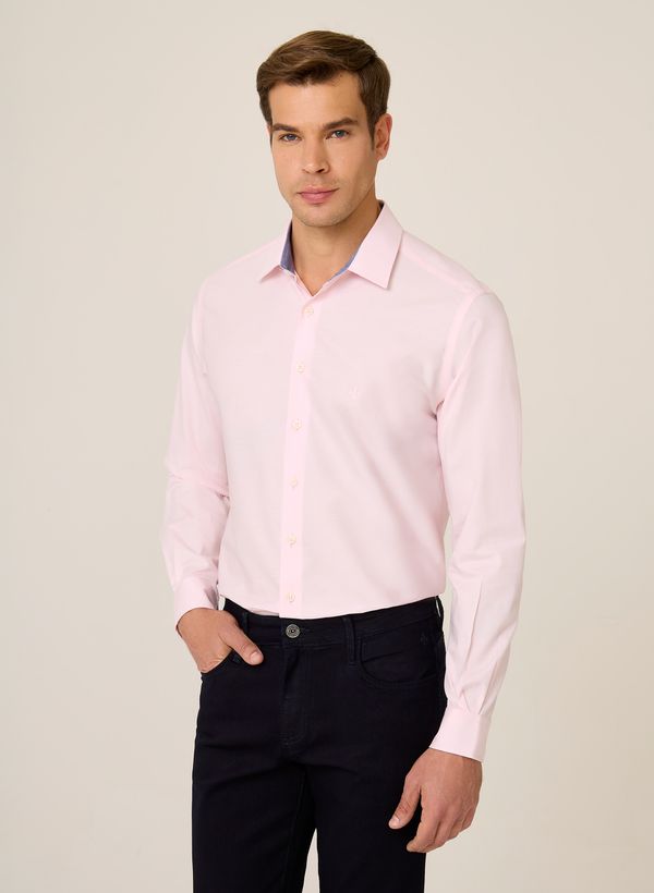 Confeccionada em tecido plano, a Camisa possui modelagem Slim Fit, colarinho Slim, mangas longas e fechamento frontal por botões.