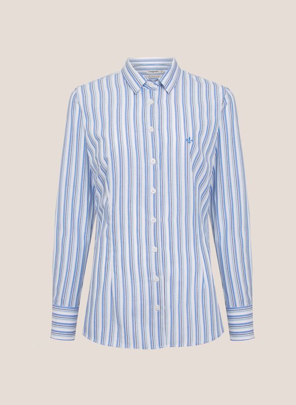 Confeccionada em tecido plano com padronagem listrada, a Camisa possui modelagem slim fit, colarinho, vista com botões, assinatura da marca em bordado, mangas longas com abotoamento nos punhos e acabamento pespontado.