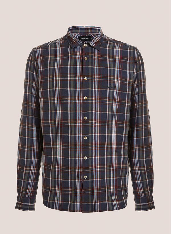 Confeccionada em tecido plano com toque de linho, a Camisa possui modelagem Slim Fit, colarinho Slim, mangas longas, punho redondo com abotoamento, padronagem Xadrez, detalhe logo bordado no peito e vista frontal por fechamento em botões.